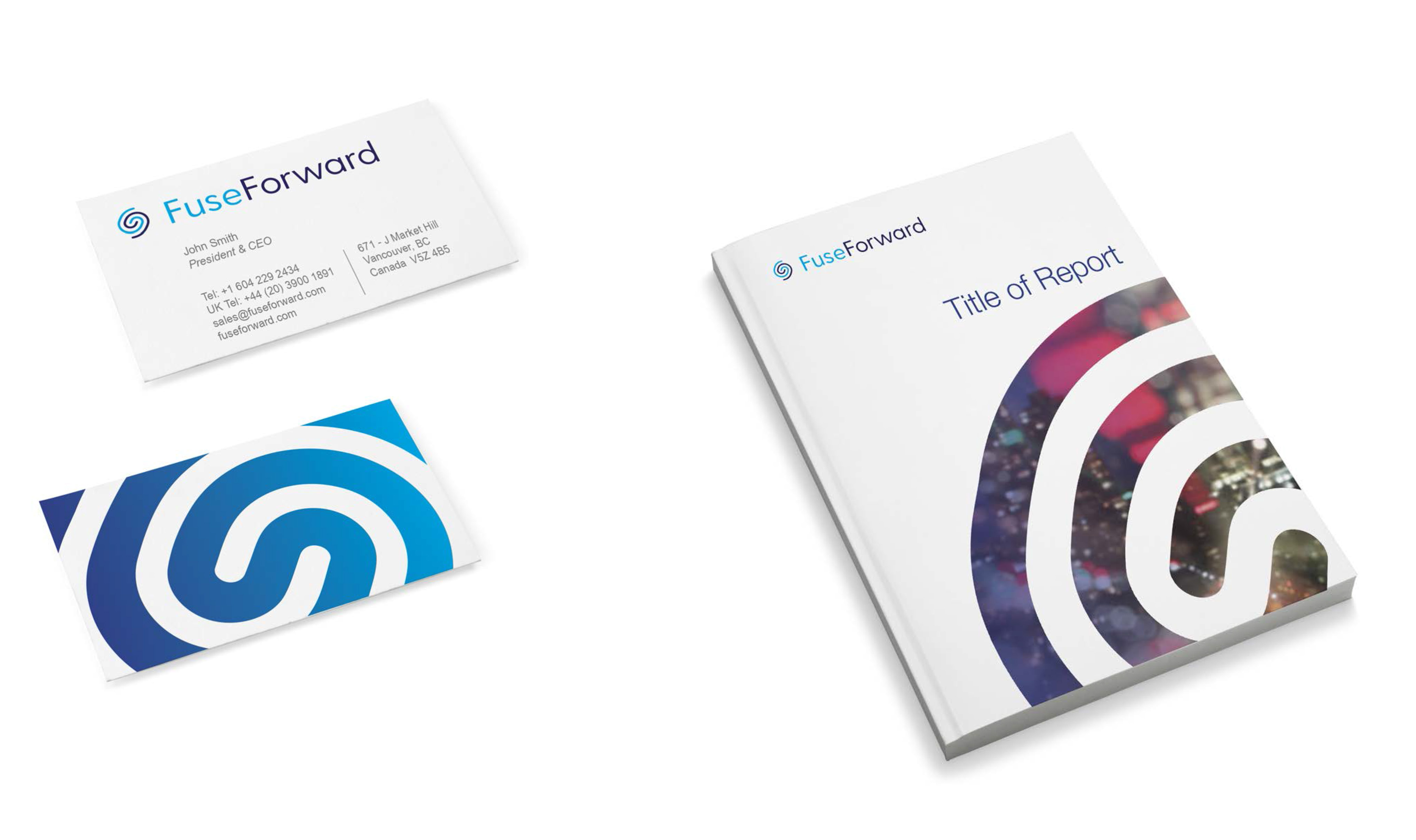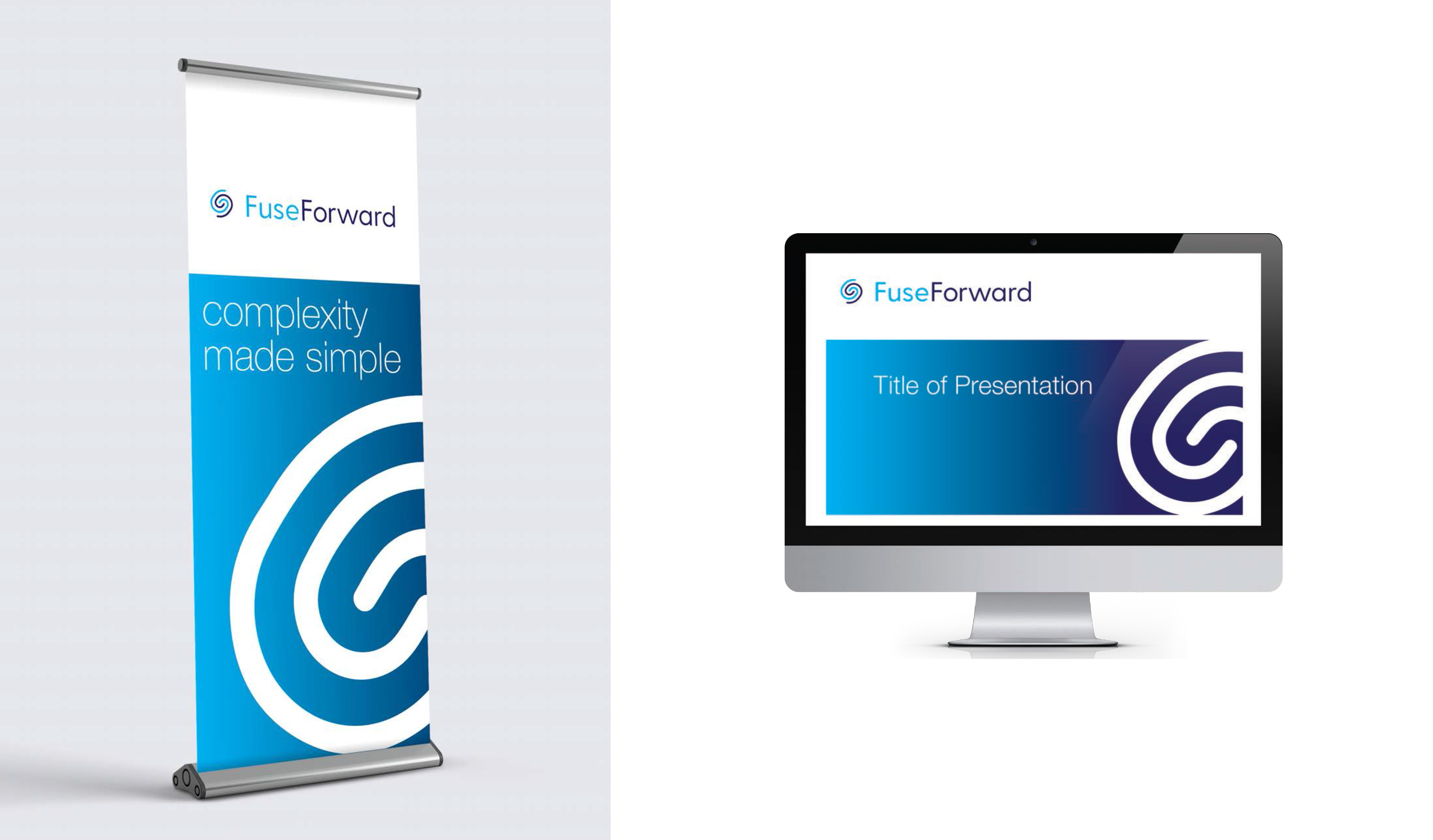 This alternative Fuseforward brand design symbolically represents optimized security and management in the cloud. The brand design elements were created for various visual communications to achieve a cohesive look and feel overall.